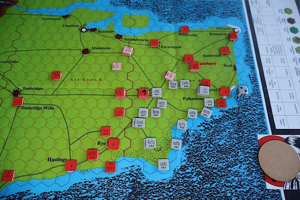 I am just partway through the invasion turn and the Germans have identified their 5 landing beaches and the drop zones for 7th Fallschirmjäger (near Folkestone) and 22nd glider (near Ashford).