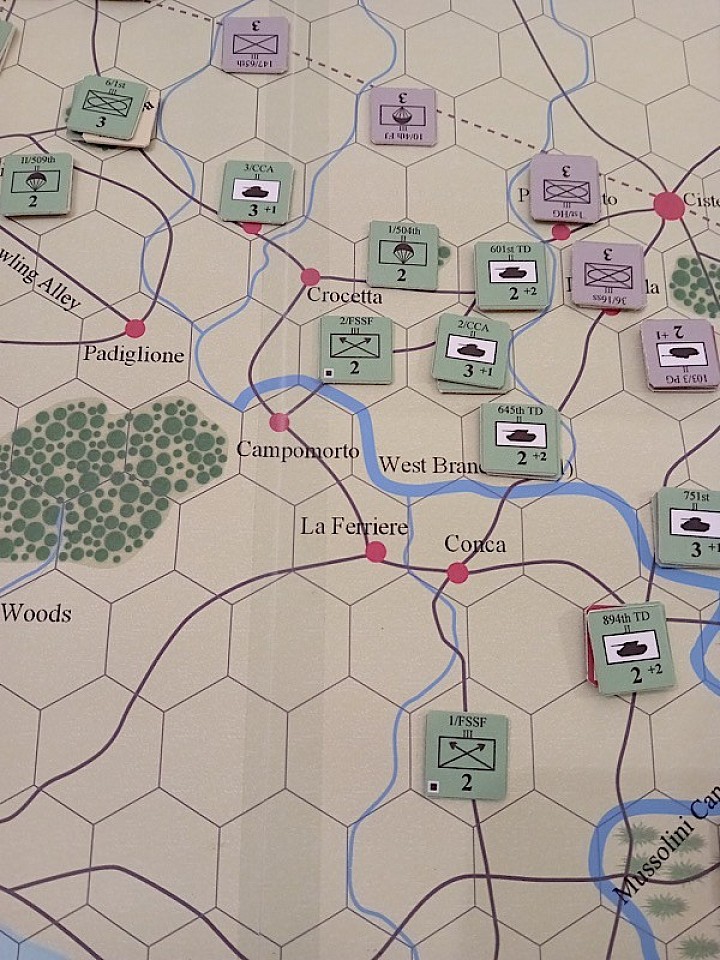 The photo here is taken towards the end of the game - the Germans have counter-attacked from Campoleone and given themselves a bit more breathing space, but this had come at the expense of heavy casualties, especially as several German formations earlier had found themselves cut off and were forced to surrender.