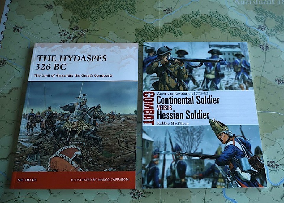 I have a Hydaspes scenario in the Alexander module of Great Battles of the Ancient World by GMT and the Hessian book will just be a delight to read alongside any of the games from the Battles of the American Revolution, also published by GMT.
