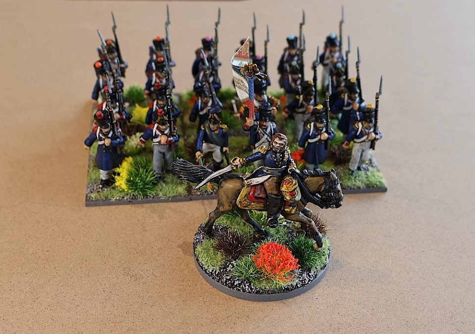 An initial trial with the Soldiers of Napoleon rules highlighted a couple of gaps in the collection that need early attention - the lack of Skirmishers and local commanders.