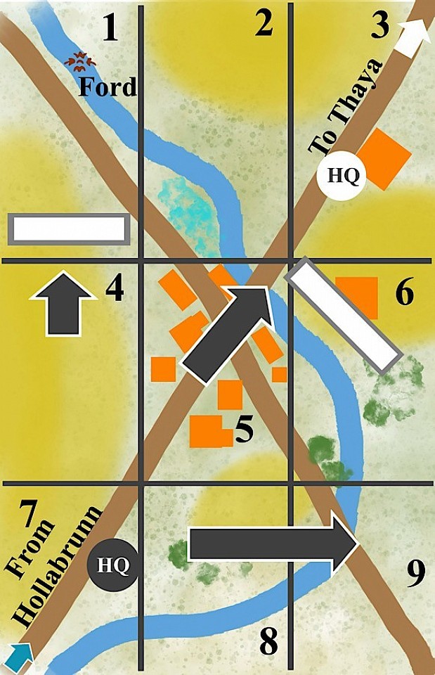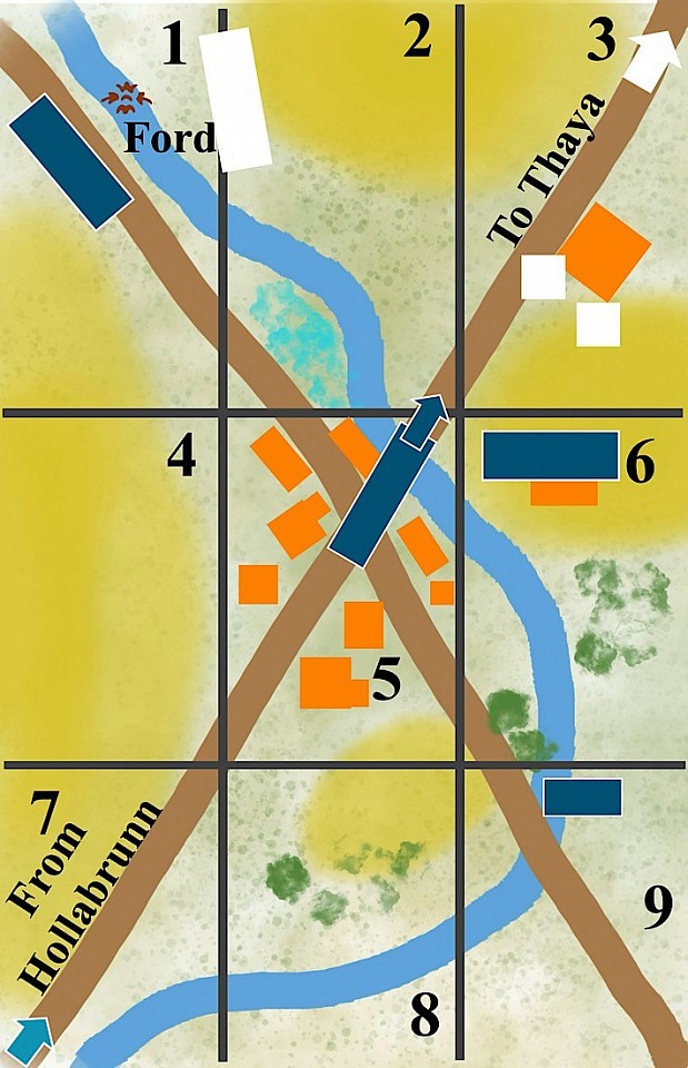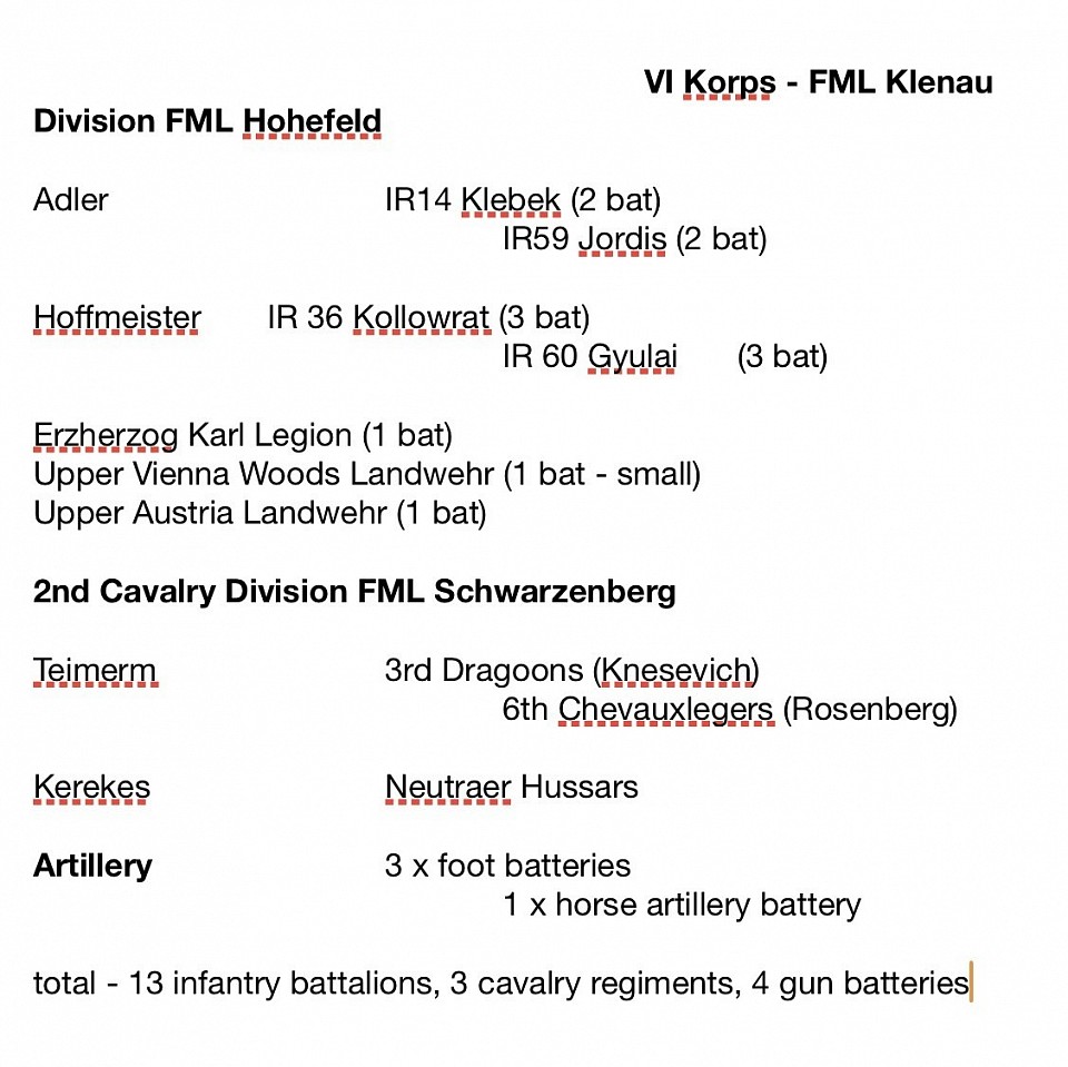Kenau's main problem was that the troops he needed (Schwarzenberg's 2nd Cavalry Division) to secure the farm were still too far away, having only just crossed the upper ford (area 1) to cross the Göllersbach.